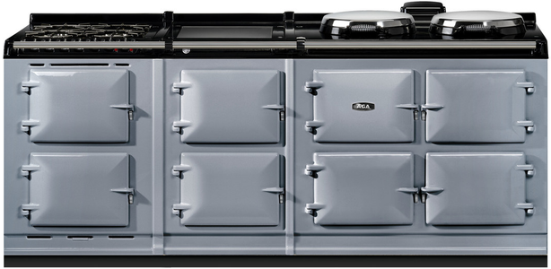 The R7 offers classic AGA styling and boasts the gleaming vitreous enamel finish which takes three days to achieve at our factory in Shropshire, England. Built and manufactured to our meticulous standards, these models feature three cast-iron ovens and two independently controlled hotplates (boiling and simmering plates), while the 150 models feature two additional ovens for slow cooking and warming, and the choice of either a warming plate or a single-zone induction cooktop.These ranges are highly detailed, from the AGA embossed cast-iron oven doors to the branded handrails and black flush fitting side panels.