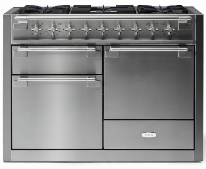 The AGA Elise 48" Dual Fuel Model features three separate ovens. The first is an electric multifunction oven with seven settings including true European dual-convection cooking, fan-assisted baking, browning, thaw and serve, convection broiling, warming, and conventional cooking.Read More