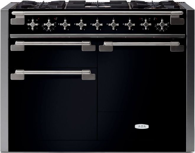 Complimented by stunning new cruciform knobs with knurling, shipped standard in brushed nickel, but also available as after-market options in five additional versatile hardware finishes (polished chrome, polished brass, polished copper, brushed brass, and black anodized aluminum), the re-imagined AGA Elise 48" dual fuel model confidently steps into the spotlight along side its classic AGA siblings.