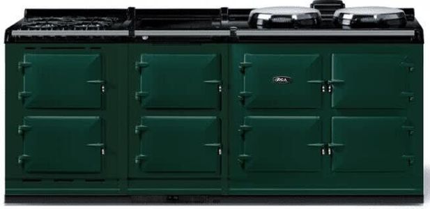 In addition to all the features of your main AGA eR7 100 range, this 210 model configuration provides ample cooking space with slow cook and warming ovens, a large warming plate atop one of the hotcupboards, as well as an additional conventional oven with electric broiler, convection oven with fan, and 4-top gas burners.Read More