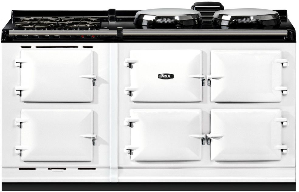 The R7 offers classic AGA styling and boasts the gleaming vitreous enamel finish which takes three days to achieve at our factory in Shropshire, England. Built and manufactured to our meticulous standards, these models feature three cast-iron ovens and two independently controlled hotplates (boiling and simmering plates), while the 150 models feature two additional ovens for slow cooking and warming, and the choice of either a warming plate or a single-zone induction cooktop. These ranges are highly detailed, from the AGA embossed cast-iron oven doors to the branded handrails and black flush fitting side panels.