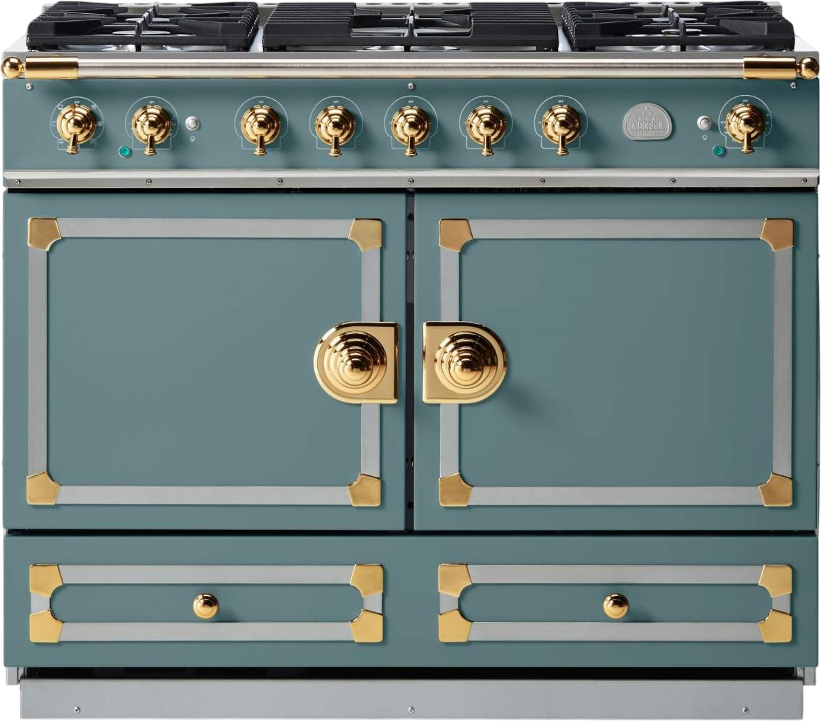 The original CornuFé range, this 43" range is your first La Cornue love. It’s available in eleven colors and 3 trim accent choices of Polished Brass, Satin Chrome and Polished Chrome. The CornuFé 110 features two electric convection ovens, one of which is a seven mode multifunction oven, the other an electric convection oven, five powerful gas burners and one large storage drawer.Read More
