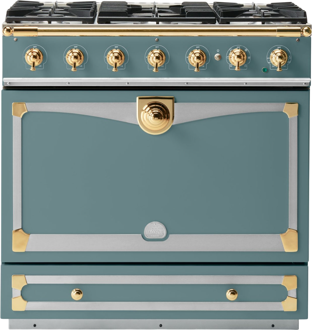 The single oven “Albertine” range is the baby of the CornuFé family. With one large multi-function convection oven, and seven unique cooking modes, the range has five powerful brass gas burners and one large storage drawer. The CornuFé 90 is available in eleven colors and 3 trim accent choices of Polished Brass, Satin Chrome and Polished Chrome.Read More
