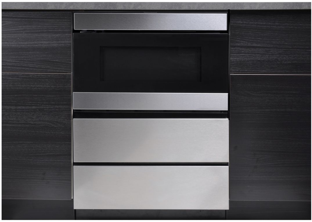 This Microwave Drawer Oven Pedestal is designed in classic stainless steel and accepts custom front door panels to integrate into your kitchen's existing decor seamlessly. From craftsman to contemporary, the Sharp 24" Microwave Drawer Oven's sleek, low-profile design and stainless-steel 24" Under the Counter Microwave Drawer Oven Pedestal beautifully complement any kitchen style or appliance.