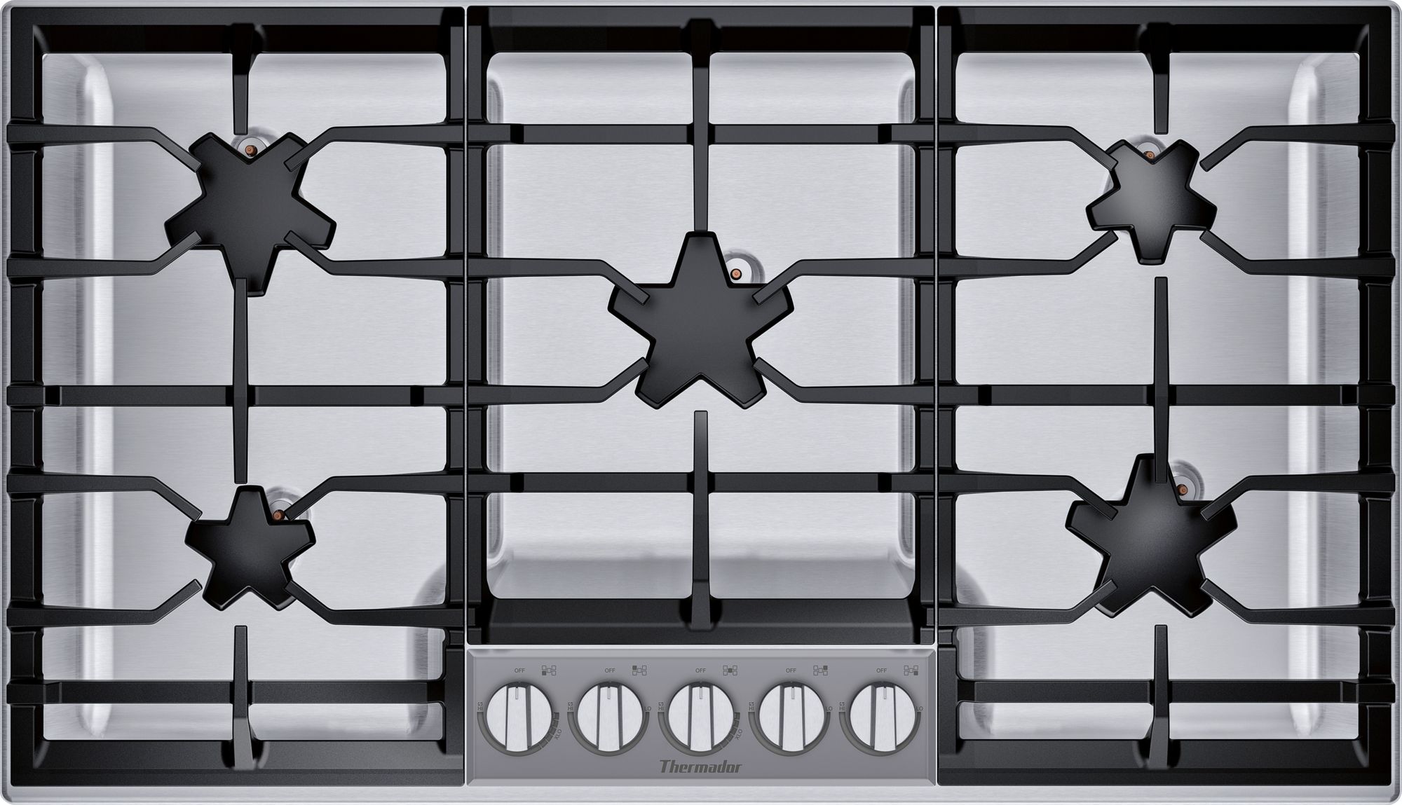 Thermador® Masterpiece® Pedestal Star® 36" Stainless Steel Gas Cooktop with 5 burners, metal knobs and cast iron grateRead More