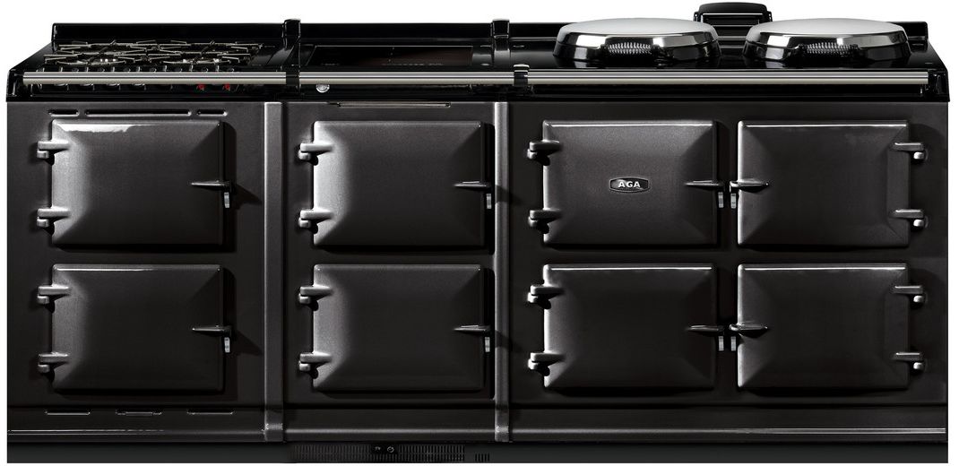 The R7 offers classic AGA styling and boasts the gleaming vitreous enamel finish which takes three days to achieve at our factory in Shropshire, England. Built and manufactured to our meticulous standards, these models feature three cast-iron ovens and two independently controlled hotplates (boiling and simmering plates), while the 150 models feature two additional ovens for slow cooking and warming, and the choice of either a warming plate or a single-zone induction cooktop. These ranges are highly detailed, from the AGA embossed cast-iron oven doors to the branded handrails and black flush fitting side panels.