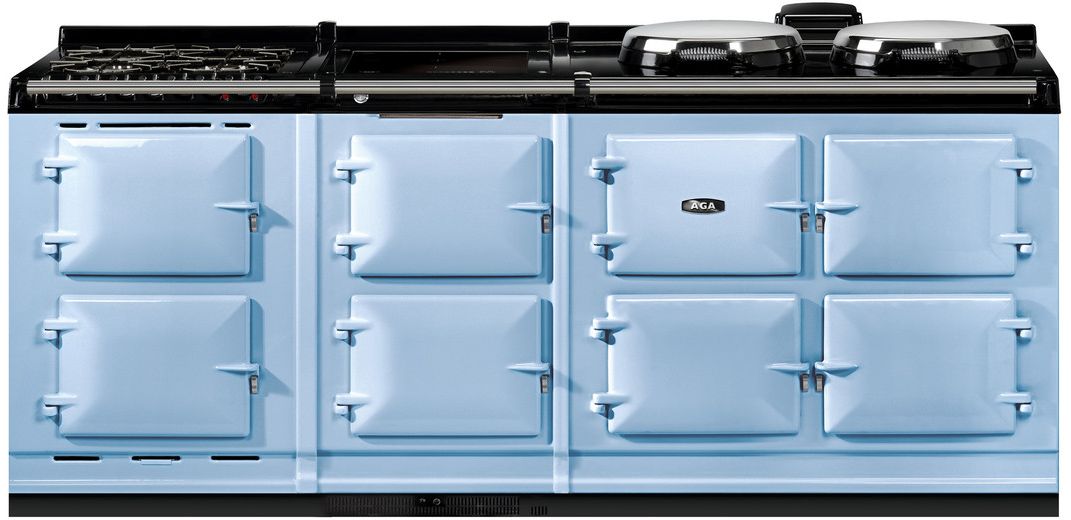 The R7 offers classic AGA styling and boasts the gleaming vitreous enamel finish which takes three days to achieve at our factory in Shropshire, England. Built and manufactured to our meticulous standards, these models feature three cast-iron ovens and two independently controlled hotplates (boiling and simmering plates), while the 150 models feature two additional ovens for slow cooking and warming, and the choice of either a warming plate or a single-zone induction cooktop. These ranges are highly detailed, from the AGA embossed cast-iron oven doors to the branded handrails and black flush fitting side panels.