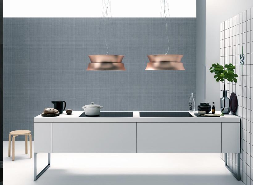 Falmec Dama series 24" island range hood in Copper, with LED ambient lighting.Read More