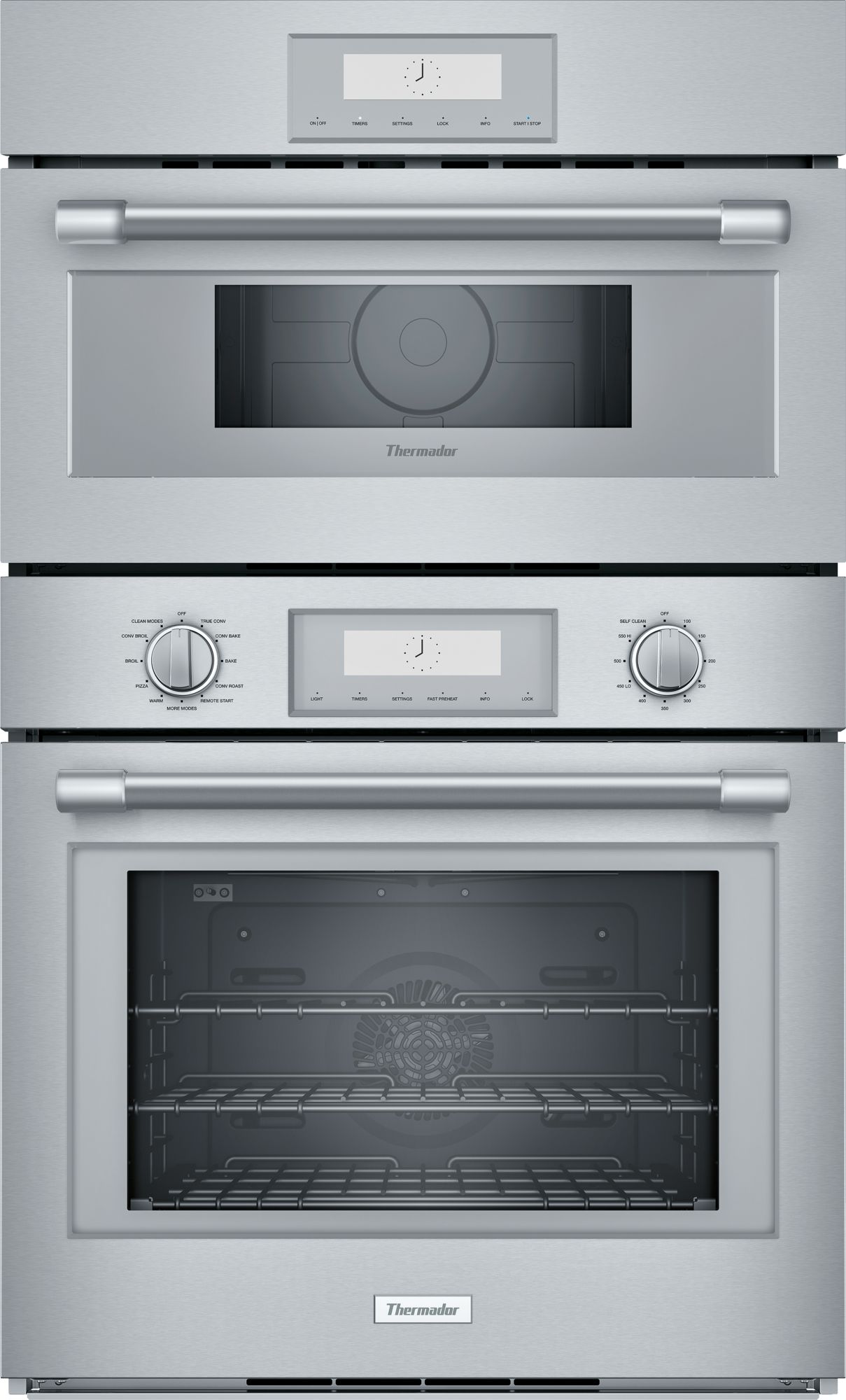 Double Oven pairs a Microwave Oven (upper) with a Full Convection Oven (lower). True Convection offers precise airflow for cooking on multiple levels. SoftClose® hinges prevent slamming and ensure ultra smooth closing.Read More